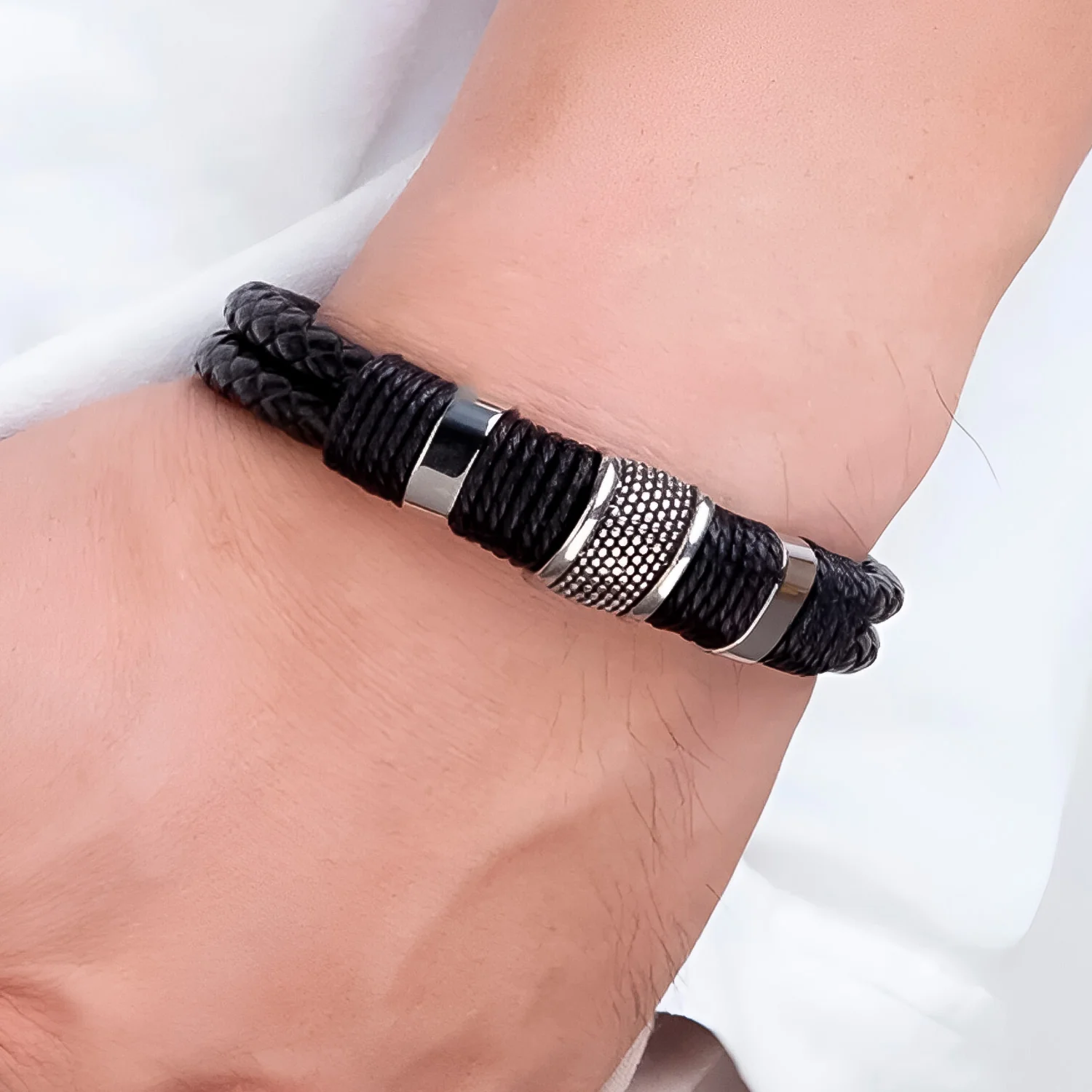 Pulsera Negra JOY-4 Hombre Cuero y Acero
