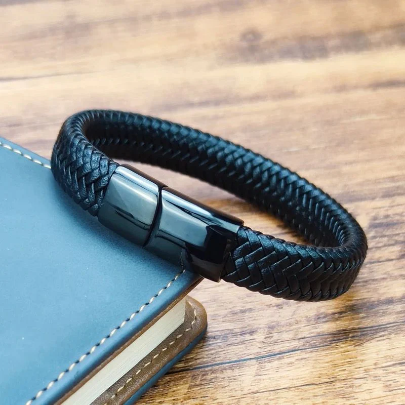 Pulsera Trenzado JOY-3 Hombre Cuero Negro