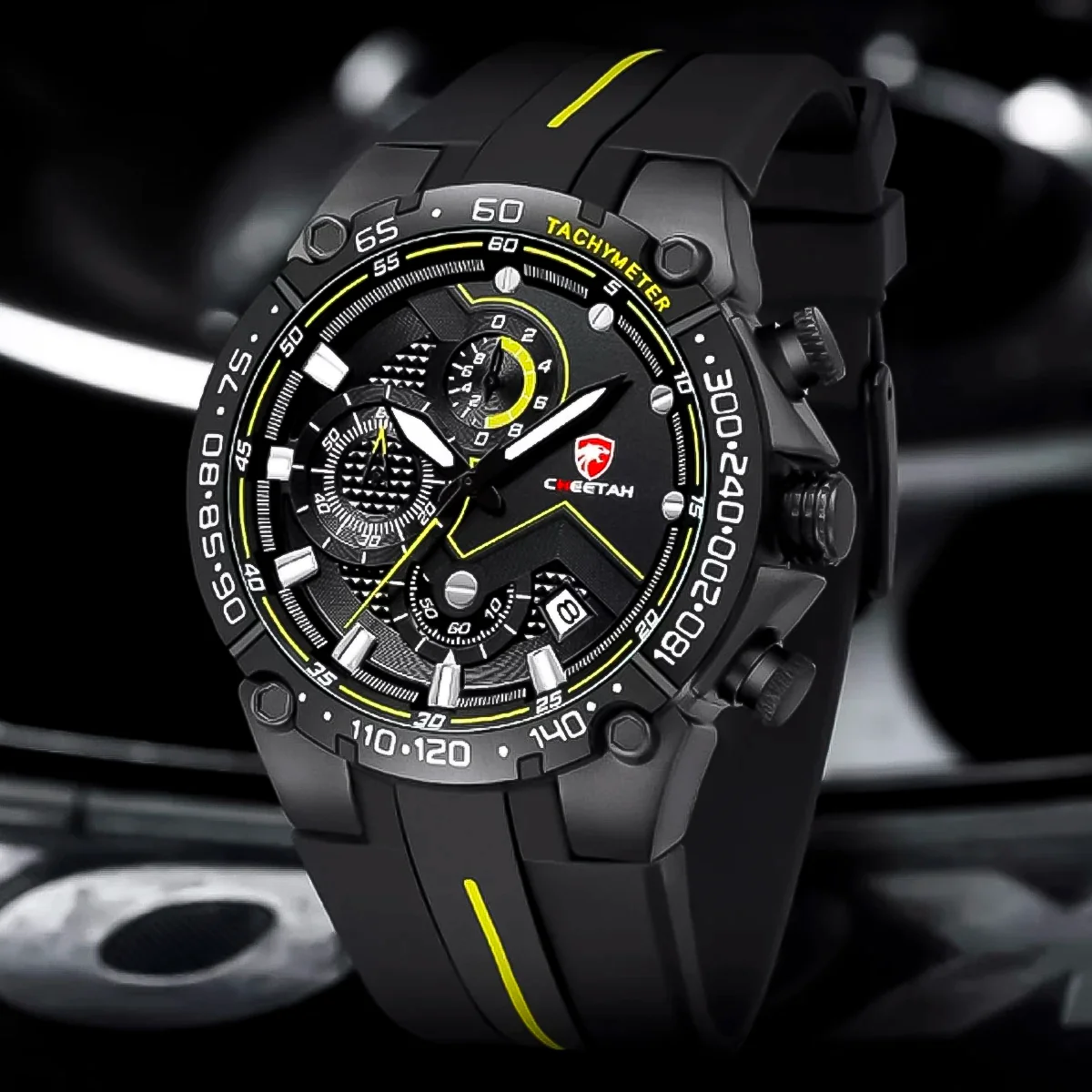 Reloj Cheetah Negro con Amarillo CHT-2 de moda con correa de silicona, 100% original de fábrica, garantía 1 año, el acompañante perfecto para el hombre actual.