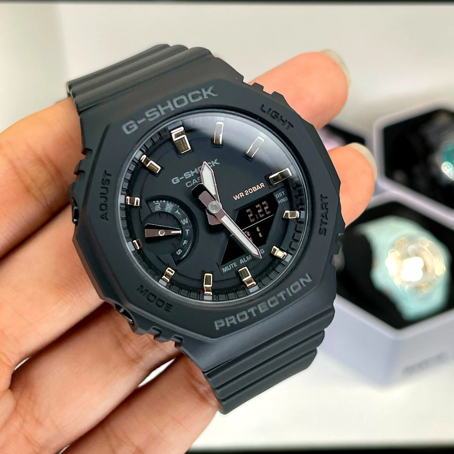 El G-Shock GMA-S2100-1A es mucho más que un accesorio. Diseñado para quienes valoran la funcionalidad y la estética limpia en su día a día, este modelo combina un perfil delgado con la clásica resistencia G-Shock y un diseño monocromático elegante y discreto.