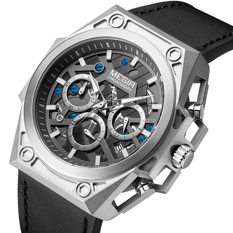 Reloj Megir elegante MEG-20 de moda con correa de cuero, 100% original de fábrica, garantía 1 año, el acompañante perfecto para el hombre actual.