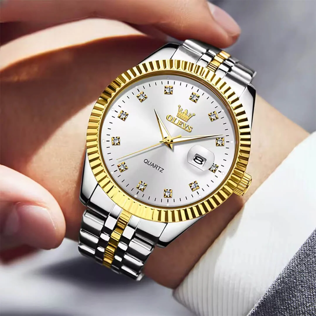 El Olevs (OLV-11) redefine el concepto de sofisticación contemporánea. Diseñado para el hombre que busca destacar con clase y confianza, este modelo combina una estética dorada impecable con una tecnología de precisión, logrando el equilibrio perfecto entre lujo y funcionalidad.