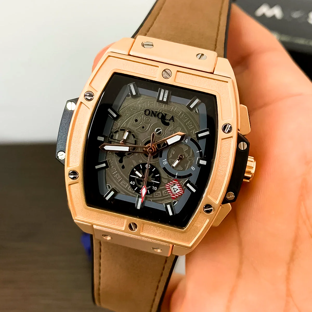 Reloj Onola Marrón ONO-13 de moda con correa de cuero, 100% original de fábrica, garantía 1 año, el acompañante perfecto para el hombre actual.